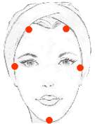 Aclaramos: mentón, centro de la frente y sobre los pómulos.